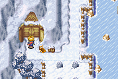 Geh nach Kolima und schau dir die wieder lebende Stadt an. Auch kannst du dir ein paar neue Waffen und Rüstungen kaufen! Schließlich kannst du dir auch noch einen Schatz schnappen! Gehe in das Haus mit dem Zaun, wo der Venus-Dschinn Granit war. Sprich mit dem Mann in dem Haus, er wird von seinem Schatz erzählen, welcher im Wald versteckt ist, allerdings verrät er nicht viel. Verlasse Kolima in Richtung Westen und lauf ganz weit in diese Richtung, bis ihr fast an den Fluss kommt, der dieses Stück Land abgrenzt. Stelle dich auf die Waldfläche kurz davor und drücke A, du findest die Schild-Stiefel!