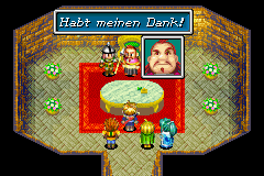 In Bilibin angekommen gehst du in den nächsten Bereich zu McCoys Palast. Die Soldaten führen dich zu Lord McCoy, da sie die Helden, die den Fluch gebrochen haben, schon die ganze Zeit gesucht hatten. McCoy bedankt sich bei dir für die Rettung der Menschen und will dir dafür auch ein Geschenk geben. Du wirst in die Schatzkammer gebracht und darfst nun einen von vier Schatzkisten auswählen, deren Inhalt du dann behalten darfst. Von links nach rechts sind in die Schatztruhe folgende Dinge enthalten: Fläschchen, Heiltrank, Psy-Kristall und Lebenswasser! Da du nur einmal auswählen kannst, wähle das für dich beste Item. Zu empfehlen wäre hier die Mitnahme des Lebenswassers. Wenn das Geschenk gewählt ist, kannst du den Palast und Bilibin verlassen.