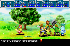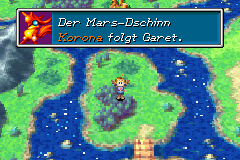 Nach insgesamt zwei Wäldern und andren Dingen, die du gesehen hast, ist jetzt etwas Abwechslung nicht schlecht. Gleich wirst du auch in die chinesisch angehauchte Stadt Xian kommen, allerdings musst du vorher noch einen Mars-Dschinn holen. Dieser befindet sich nicht in einer Höhle oder einem Wald sondern auf der Weltkarte! Er wird zufällig im Kampf erscheinen, du musst nur an der richtigen Stelle stehen. Gehe vom Wald von Mogall aus nach Nordwesten. Gehe noch nicht in die Stadt, sondern laufe vorbei und weiter nach Norden. Irgendwann stößt du auf eine Brücke, die ein kleineres Feld vom bisherigen Land trennt. In diesem kleinem Feld wirst du den Mars-Dschinn im Kampf treffen, speichere vorher also ab und mach dich kampfbereit. Nach nicht mal einer Runde mit deinen Beschwörungen kannst du schon 173 Erfahrungspunkte, 210 Münzen und natürlich den Dschinn Korona erhalten.