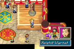 Ein Mann wird nun an die Tür gehen und Meister Feh holen. Gerade in diesem Moment kommt Meister Feh mit seiner Tochter Feizhi raus. Sie reden über einen gewissen Hsu, der scheinbar nicht da ist, obwohl er schon zurück sein müsste. Die beiden reden von Kräften, die Feizhi haben soll. Die Gabe der Prophezeiung soll sie haben, doch ihr Vater glaubt das nicht und sie zählt Dinge auf, die sie vorhersagte und die auch so eingetroffen sind, aber ihr Vater bleibt sturr und glaubt ihr nicht. Wütend verschwindet sie - sie will selbst nach Hsu suchen. Meister Feh geht nun auf dich ein und du sollst ihm dein Chi noch einmal zeigen. Bleibe genau da stehen und drücke Select zum Auswählen der Psynergy, sofern du sonst immer A drückst, denn mit A würdest du Meister Feh ansprechen! Wieder sind alle verblüfft, doch Meister Feh sagt dir, dass das kein Chi war, sondern nur etwas Ähnliches. Antworte mit "Ja" auf die Frage, ob du im Fuchin-Tempel warst. Er erklärt, dass Chi die Energie des Körpers und Qi die Energie des Geistes entfesselt. Ohne viel weitere Worte endet die Unterhaltung und du kannst die Schule und Xian verlassen. Am Ausgang findest du Feizhi, allerdings redet auch sie nur kurz mit dir, wenn du sie ansprichst. Ihre Gedanken kreisen um den Westen, es ist ihr zu gefährlich dort alleine hinzugehen.