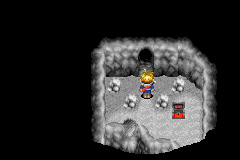 Laufe wieder zurück zum Hund, der inmitten der Gräbe umhergesprungen ist. Er wollte scheinbar auf irgendetwas hinweisen. Aus Erfahrung kannst du vielleicht inzwischen ahnen, was man mit diesem Grabsteinkreis machen kann und sollte - Enthüllung! Setzte diese Psynergy an und du wirst einen Geheimgang nach unten erkennen. Klettere hinunter und du findest dich in der Höhle von Vault wieder! Speichere zwischendurch mal wieder ab und laufe dann nach Süden in den nächsten Raum. Wenn du hier rechts läufst erwartet dich eine Mimic, der du 321 Erfahrungspunkte, 356 Münzen und ein Fläschchen abluchsen kannst und auch solltest - denk an dein Training! Du solltest hier etwa Level 19 haben und im Laufe der Höhle beziehungsweise des Kapitels auf Level 20 kommen! Laufe nun wieder nach Westen und hoch in einen weiteren Raum.