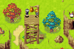 Du kommst jetzt von der Seite, an der du vorhin nicht vorwärts gekommen wärst. Jetzt kannst du ganz nach links laufen, die Treppen nach oben nehmen und dem Weg folgen, bis du in das Becken steigen kannst, was du vorhin geleert hast. Laufe rechts davon durch den Durchgang in den anderen Raum, springe dort auf die andere Seite und folge dem Weg, nachdem du die Leiter hochgeklettert bist. Wie du bemerkst, kommst du nun wieder ins Freie. Du hast es geschafft und kannst dir den Dschinn, den du vorhin mit der Glocke hinter seinem Baum hervorgelockt hast, endlich ergattern! Ohne Kampf wird sich dieser Venus-Dschinn dir anschließen und von nun an begleitet dich auch Knospe auf deiner Reise! Speichere ab und geh zurück in die Höhle. Hier kannst du mit Isaac die Psynergy Rückzug einsetzen und du befindest dich am anderen Ende, wo du wieder ins eigentliche Dorf kommen und die Stadt verlassen kannst.