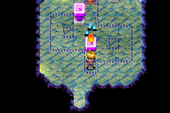 Wo die leere Kiste steht, siehst du einen halben Kreis aus Steinen und wie so oft kann man bei (Halb-) Kreisen Enthüllung benutzen, um in der Mitte etwas sichtbar zu machen, wie hier etwa einen Durchgang. Im nächsten Raum hält dich ein Feuer auf dem Boden auf, was mit Regenschauer allerdings leicht zu lösen ist. Nun kannst du nach links laufen und dort auf die andere Seite springen und dem Weg folgen, bis wieder ein Feuer deinen Weg kreuzt. Diesmal hat das Feuer eine Eissäule zu Wasser geschmolzen, aber auch hier kannst du Regenschauer benutzen und die Säule erstarrt von selbst zu Eis. Im nächsten Raum erwarten dich nun zwei Schätze: ein Lebenswasser und ein Psy-Kristall! Nun hast du hier auch alles getan und du kannst dich auf den langen Rückweg zu den Docks von Kalay machen, denn dort geht es in unserer Geschichte weiter! Den Weg solltest du alleine finden, immerhin bist du ihn eben erst gelaufen. Außerdem kannst du auch mit einem Druck auf die R-Taste die Weltkarte aufrufen und diese wird dir auch einen Anhaltspunkt geben. Sofern es dennoch Probleme gibt sollten dich vergangene Teile der Komplettlösung weiterbringen. Wenn du bei den Docks von Kalay angekommen bist, speicherst du erst einmal ab und erholst dich von den vielen Ereignissen und dem langen Marsch.
