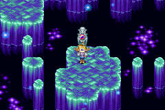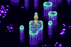 Springe jetzt wieder zurück zur großen Plattform, auf der Kraden und Jenna stehen. Du musst an ihnen vorbei und den Weg nach unten nehmen, um an den Jupiter-Stern zu kommen. Auch das sollte sich nicht mehr als Schwierigkeit erweisen, speichere jedoch vorher, denn eine Sequenz folgt. Isaac und Garet werden aufmerksam, da Kraden ihnen nicht wie vorher zugerufen hat. Sie schauen rüber und sehen zu ihrem Entsetzen Saturos und Menardi, die bei Kraden und Jenna verweilen und die Sterne haben wollen. Ein weiterer Mann taucht auf, es ist Felix, der Bruder von Jenna, der tot geglaubt war. Wohl oder übel musst du ihnen die Elementar-Sterne übergeben und letztendlich musst du dich auf den Weg zum letzten Elementar-Stern machen.