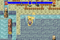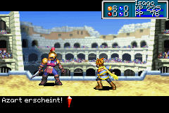 Warte nun die restliche Zeit, bis dein Gegner auch ankommt und der erste Finalkampf geht los! Nun musst du gegen Azart kämpfen. Beginne mit der Beschwörung Gericht und in der nächsten Runde wirkst du Ragnarök. Heile dich nun erst mit Heilwasser und benutze dann erneut Ragnarök ein. Je nachdem wie er sich heilt solltest du noch Kiesel benutzen oder weiter mit Psynergy attackieren und den Kampf erfolgreich beenden. Wenn du verlieren solltest, kannst du entweder neu laden oder die Spiele von vorne beginnen, da du im Palast aufwachst. Doch das sollte mit gutem Training und der richtigen Taktik erst gar nicht geschehen sein. Die Wachen werden nach dem Sieg erstaunt über deine Kraft sein und schon beginnt die zweite Finalrunde. Da du jetzt weißt, wie alles abläuft, musst du nur genau darauf achten, wie die Abschnitte der Runde sind und wo du deine Mitstreiter platzierst, um dir den kürzest möglichen Weg zu beschaffen. Von einem Soldaten wirst du zu den Zuschauerplätzen geführt, wo die Strecke nun nicht von links nach rechts, sondern genau andersherum verläuft. Speichere hier auf jeden Fall mal wieder ab und dann geht es weiter mit dem Besichtigen der einzelnen Abschnitte.