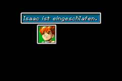 Isaac bricht nach dem Kampf, egal ob gewonnen oder verloren, zusammen und seine Kameraden schauen besorgt nach ihm, bis sie merken, dass er nur eingeschlafen ist. Sie beschließen ihn schlafen zu lassen, da er sehr erschöpft sein muss. Nach einiger Zeit wacht Isaac wieder auf und seine Gefährten erklären ihm, dass Colosso schon lange vorbei ist, er aber gesiegt hat und Babi ganz stolz auf ihn ist, während Garet ziemlich unfreundlich auf Isaacs langen Schlaf reagiert. Babi will dich nach deinem Triumph sehen, also nichts wie los. Mit einer Bewegung springt Isaac aus dem Bett und du findest dich im Schlafsaal wieder. Speichere nun erstmal ab, wenn du mit allem zufrieden bist. Sofern du verloren hast, aber die Siegesprämie haben möchtest, solltest du jetzt noch einen älteren Spielstand laden und es erneut versuchen. Ansonsten geht es jetzt weiter.
