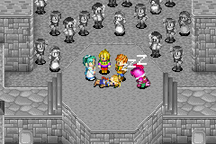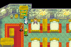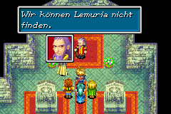 Gehe unten aus der Tür raus, laufe dann nach rechts und in der Mitte gleich die Treppe nach oben. Dort gehst du geradeaus weiter um in den Thronsaal zu gelangen, wo Babi und sein Diener Iodem schon auf dich warten. Zuerst erhältst du die Siegesprämie - eine Köderkappe! Auf die Frage, ob es dir besser geht, kannst du mit "Ja" antworten. Nach ein paar unwichtigen Gesprächsfetzen kommt jetzt ein sehr interessantes Thema auf den Tisch - Lemuria! Antworte mit "Ja", wenn du gefragt wirst, ob du davon mehr wissen möchtest. Sie reden kurz über Psynergy und die Macht von dieser tollen Fähigkeit. Nun erklärt Babi, dass Lemuria die Stadt einer uralten Zivilisation ist. Zur Zeit der Großen Flut reiste Babi in diese Stadt, die sich inmitten der See befindet. Zu dieser Zeit war er mit Lunpa, dem Gründer der Diebesstadt Lunpa, unterwegs. Das alles geschah vor hunderten von Jahren. Dank dem Lemurianischen Trank konnte er so lange leben.