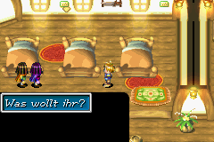Nun, wenn du den Gedankenleser einsetzen kannst, wird es Zeit viele und verdächtige Personen auszufragen. Geht aus dem Haus raus und gleich ein Stück weiter, beim Baum ist eine verdächtige Person, die auch verdächtige Gedanken hat. Gehe dannach in den Gasthof in den ersten Stock und versuche die beiden zu verhören. Wenn du sie zum ersten Mal ansprichst, wirst du nichts erreichen, also gehe zurück zum Durchgang, wo du dich dann mit deinen Gefährten besprichst. Zusammen könnt ihr sie jetzt umzingeln und aushorchen. Wenn du das geschafft hast, weißt du, dass die gestohlenen Gegenstände sich irgendwo im Gasthof befinden.Hinweis: Im Inn kannst du eine Minze finden, die deine Schnelligkeit anhebt! Diese Minze kannst du Isaac geben.
