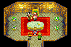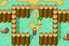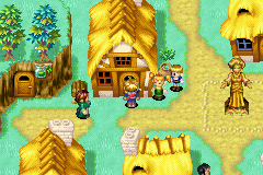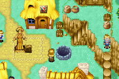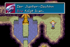 Wie du vielleicht schon gesehen hast, ist um die goldene Statue ein gepunkteter Kreis, das bedeutet, du kannst hier etwas verschieben. Unter dieser Statue ist McCoys geheimes Lager - wenn du hier jedoch runter gehst und den Dschinn siehst, kannst du nicht weiter, denn eine weitere Statue versperrt dir den Weg. Du musst also von einer andren Seite kommen. Geh also wieder hoch und lauf von hier einfach nach rechts. Du kommst zu der Treppe, die hoch zum Heiligtum der Stadt führt, doch wenn du dort oben nach Süden gehst, dann kannst du über die Stadtmauer laufen! Gehe über die kleine Überbrückung beim Stadttor und laufe den gesamten Weg ab. Wenn du auf der andren Seite über dem Itemshop ankommst, musst du Ivans Psynergy Wirbelwind einsetzen um den Eingang in der Wand freizulegen. Gehe hinein und klettere die Leiter hinunter. Nun bist du auf der andren Seite der Statue und kannst diese verschieben! Verschiebe sie nach vorne und spring auf die andre Seite, rüber zum Dschinn. Dieser Jupiter-Dschinn, der Böe heißt, folgt dir ohne einen Kampf.