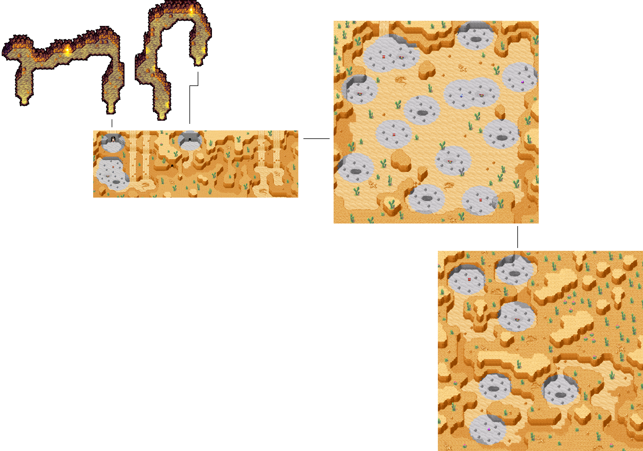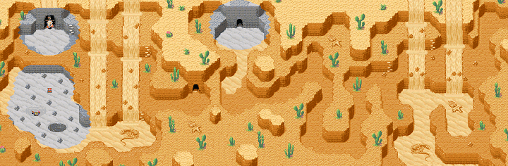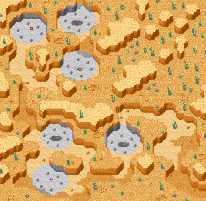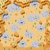 ![]() In der Wüste müsst ihr viel Gebrauch der Psynergy Enthüllung machen um heil hindurch zu kommen! Hier seht ihr ein Bild zu diesem Ort. Wenn ihr darauf klickt öffnet sich ein neues Fenster, indem die Karte in größerer und detailierter Version zu sehen ist. Diese Karte kann manchmal auch ziemlich groß sein und somit mit Ladezeiten verbunden sein. ______________________________________